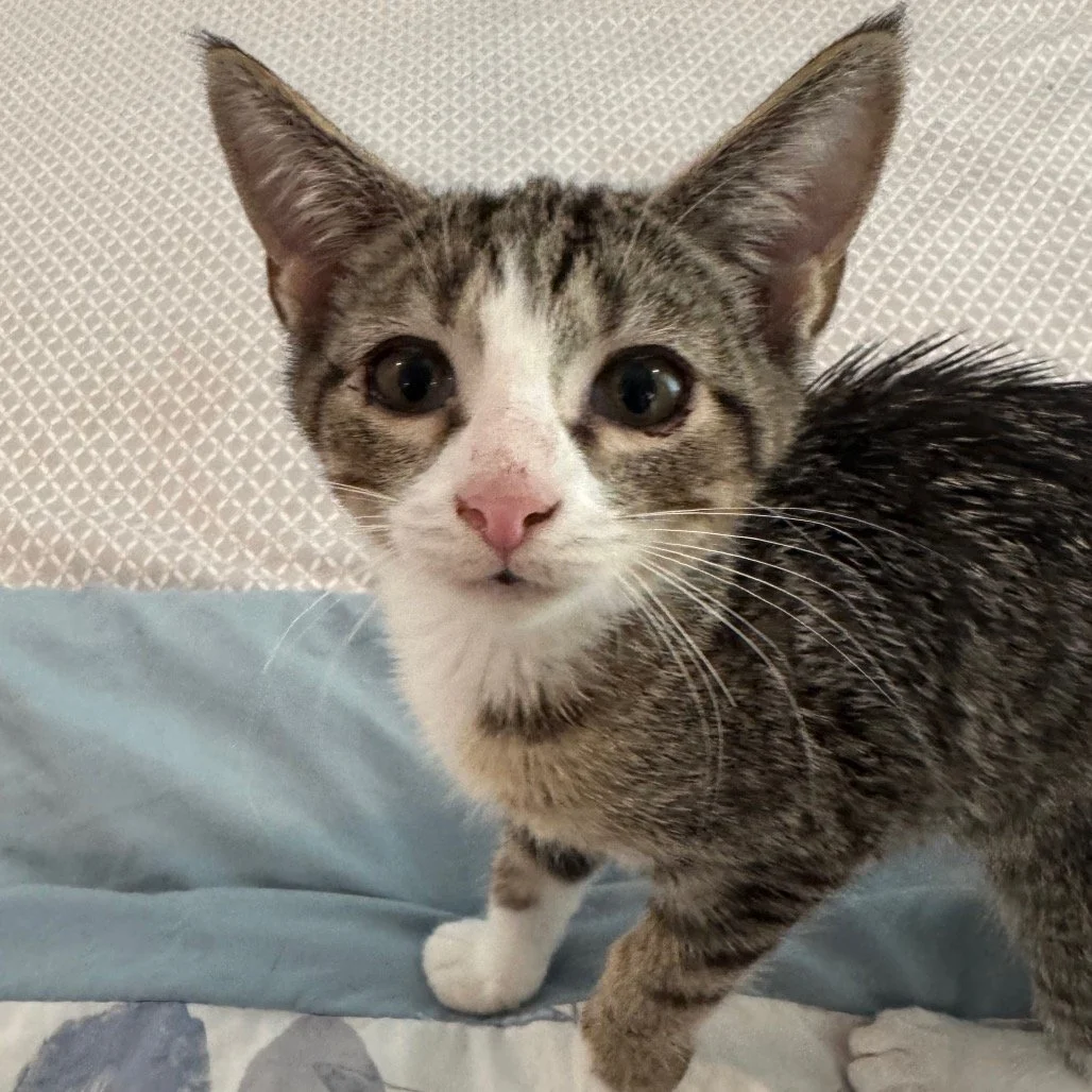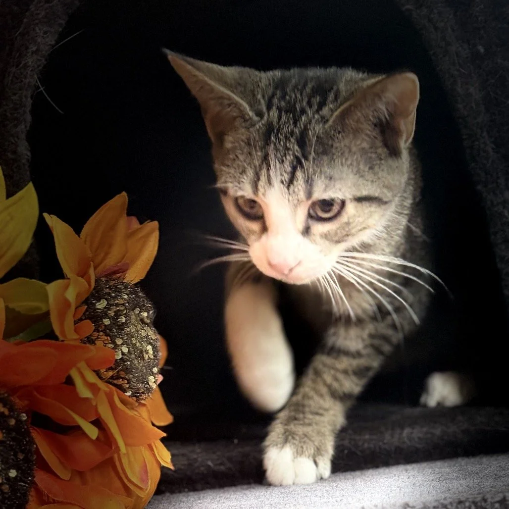 Description: Beanie Baby is a playful, curious little tuxedo kitten born in our care on June 12, 2025. With his bright eyes and dapper markings, he’s as charming as his name suggests! Beanie Baby is litter box trained, friendly with both cats and dogs, and loves to romp and explore with his foster siblings. He’s currently in the loving care of Loraine Fields while awaiting his forever family.